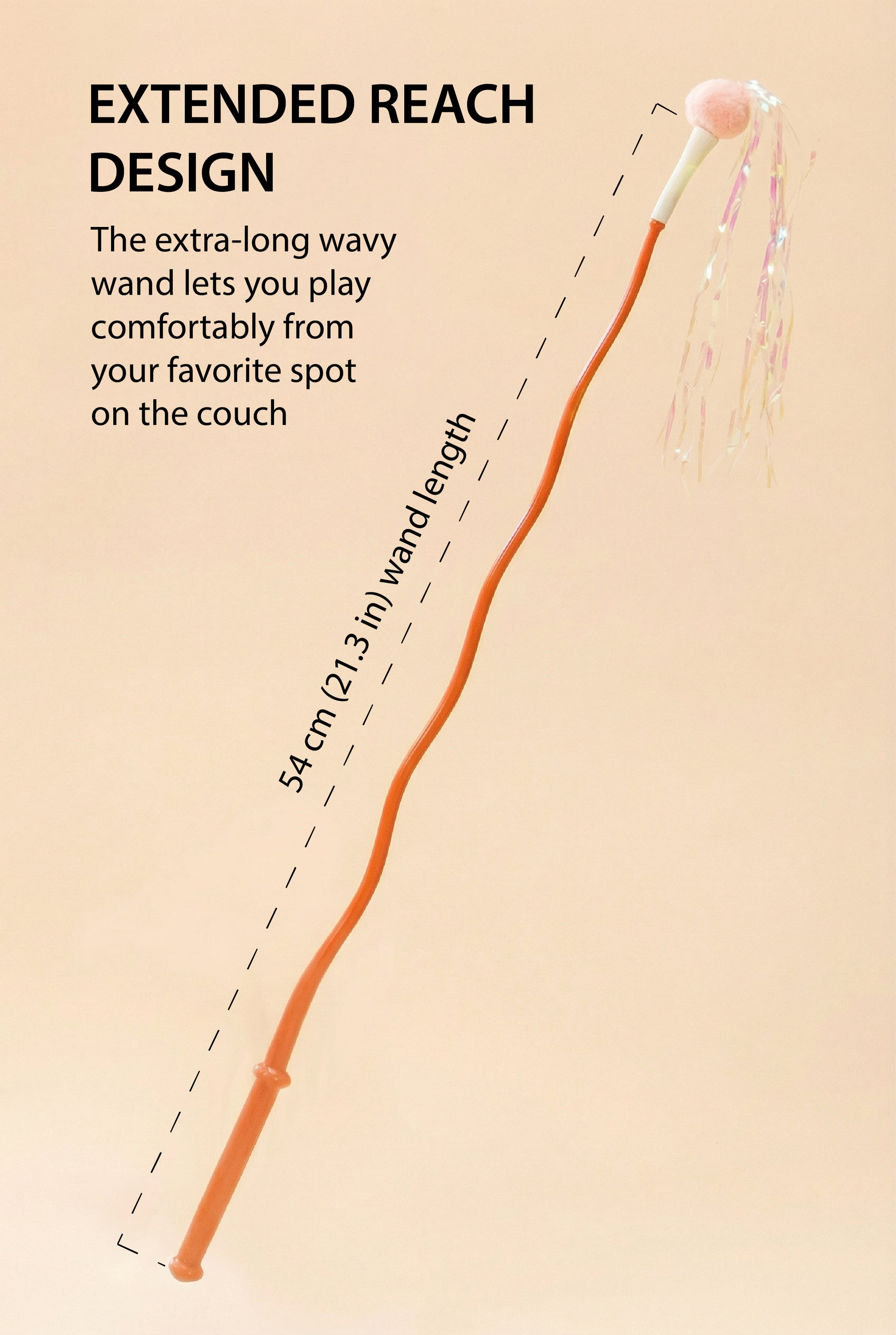 The extra-long, 54 cm (21.3 in) wavy wand lets you play comfortably from your favorite spot on the couch. Its super-flexible design creates an unpredictable, lifelike movement that mimics real prey, driving your cat wild and satisfying their hunting instincts without you having to run around.