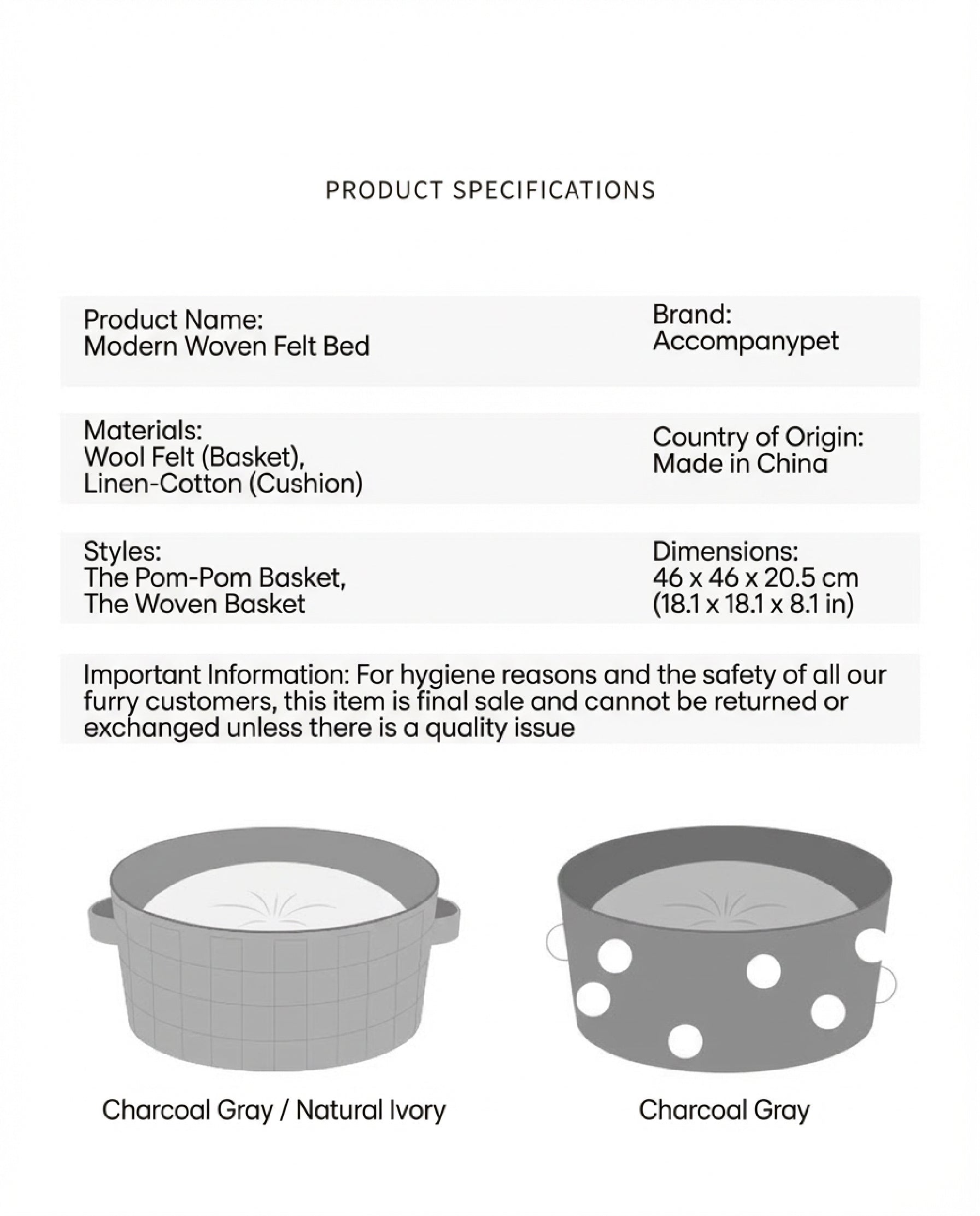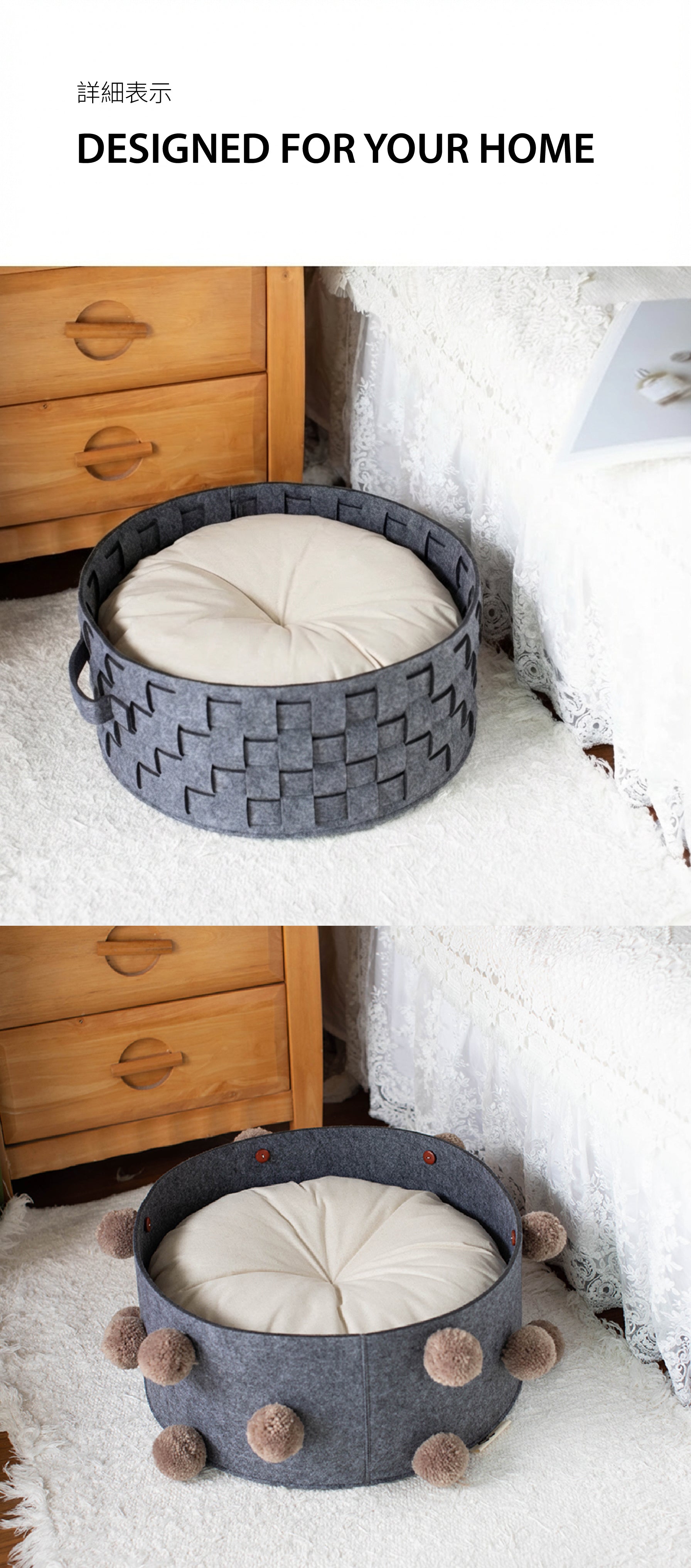 Package Includes: 1 x Felt Basket, 1 x Removable Cushion