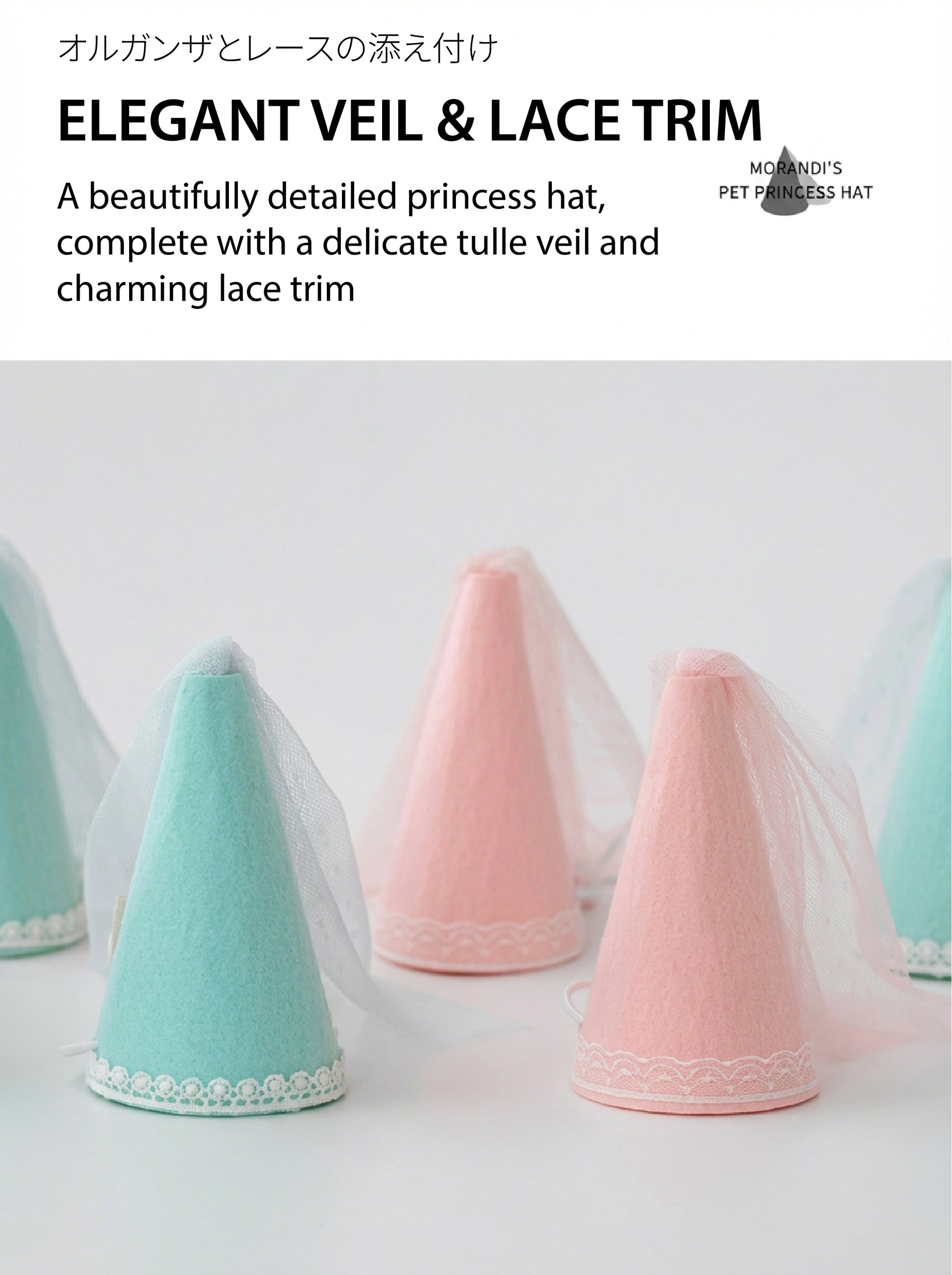 Make their special day truly magical. Our Pastel Princess Party Hat is designed for the little kings and queens who rule our hearts and our homes. Delicately crafted from soft felt and adorned with a charming lace trim and an elegant tulle veil, this hat turns any occasion into a royal celebration. Perfect for birthdays, gotcha days, or simply crowning their daily reign, it’s the ultimate accessory for the pet who deserves to be celebrated.