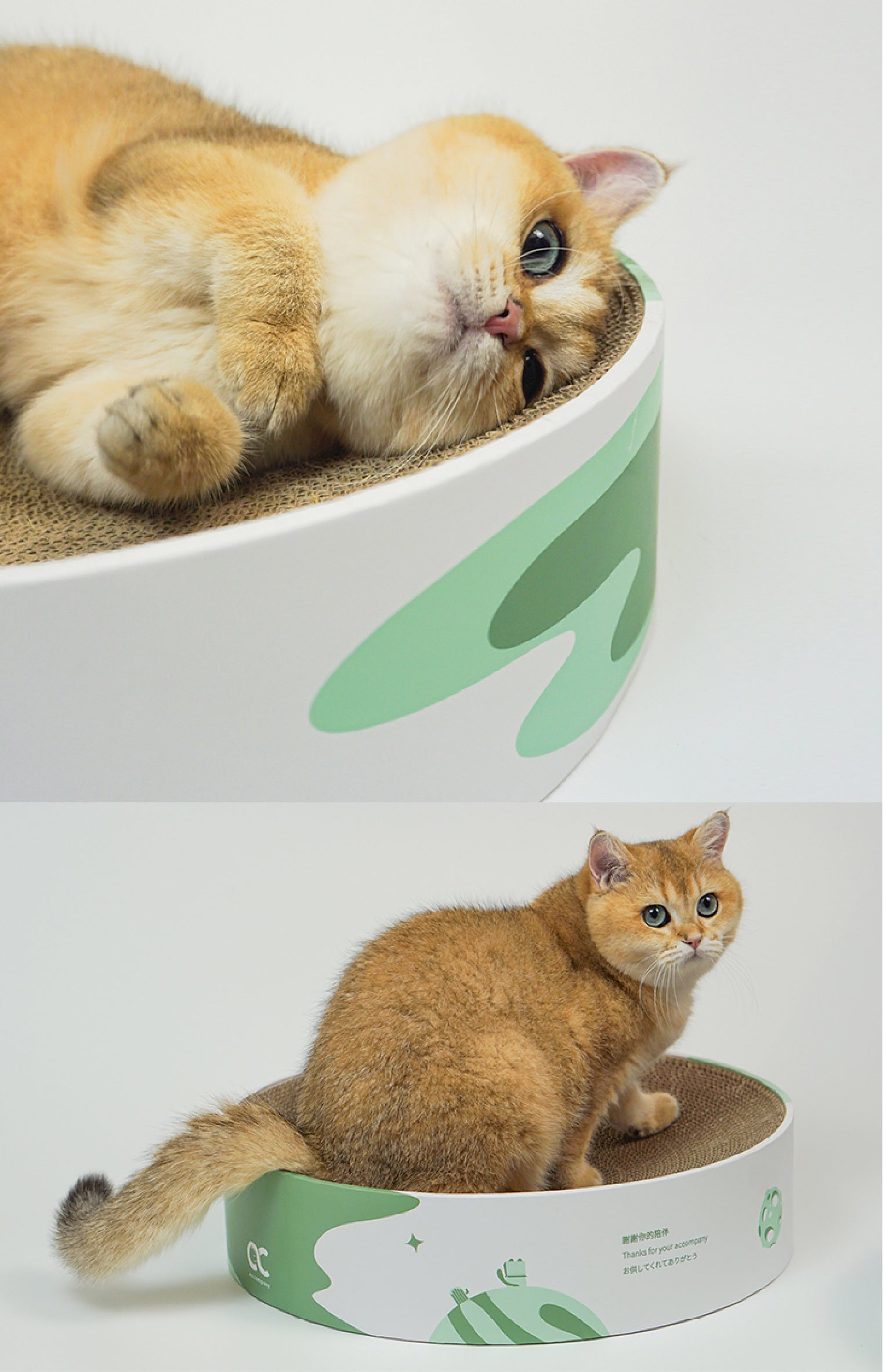 The ultimate multi-tasker for a happy cat. The irresistible cardboard texture satisfies their natural urge to scratch, while the unique bowl shape makes it the purrfect spot to curl up for a cozy nap.