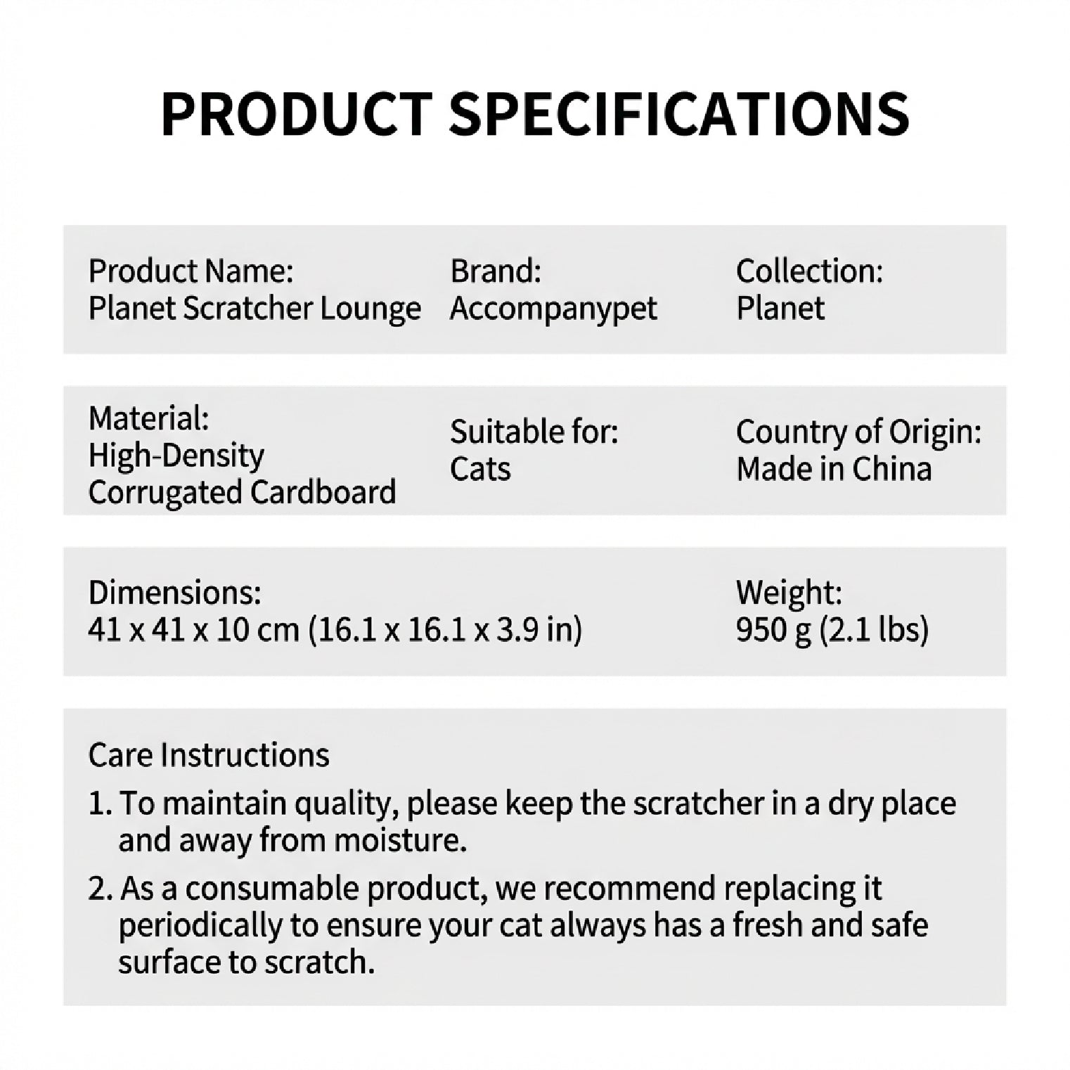 Give your feline friend a sanctuary for their most important daily rituals: scratching and napping. The Planet Scratcher Lounge isn't just a scratcher—it's an ergonomic bed, a satisfying claw-trimmer, and a stress-relief station, all rolled into one stylish design. Crafted to satisfy their natural instincts, this lounge is where playtime energy meets blissful relaxation.
