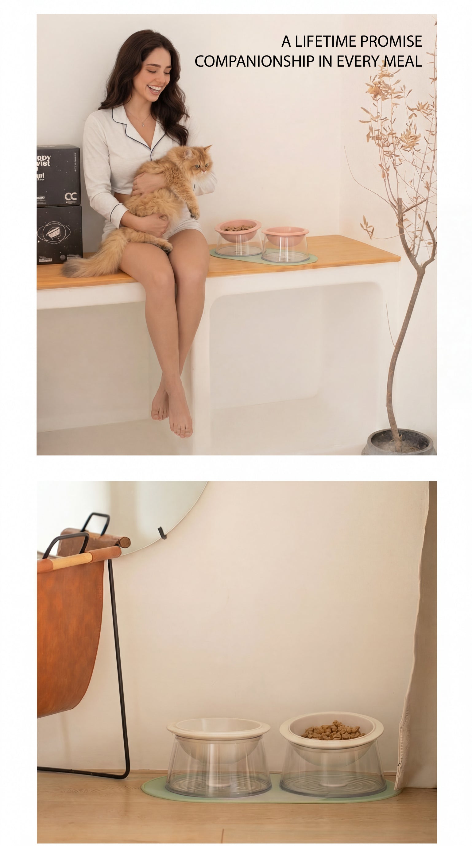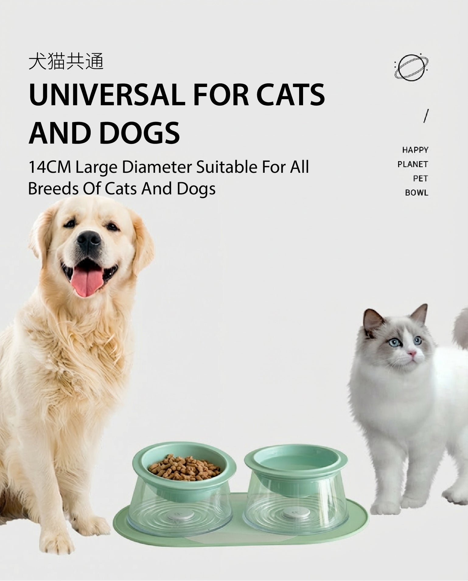 Inspired by the rings of Saturn, the Happy Planet Bowl features a unique suspended design. A premium ceramic bowl floats on a modern transparent base, creating a stunning visual centerpiece for your home while providing ultimate comfort for your pet.