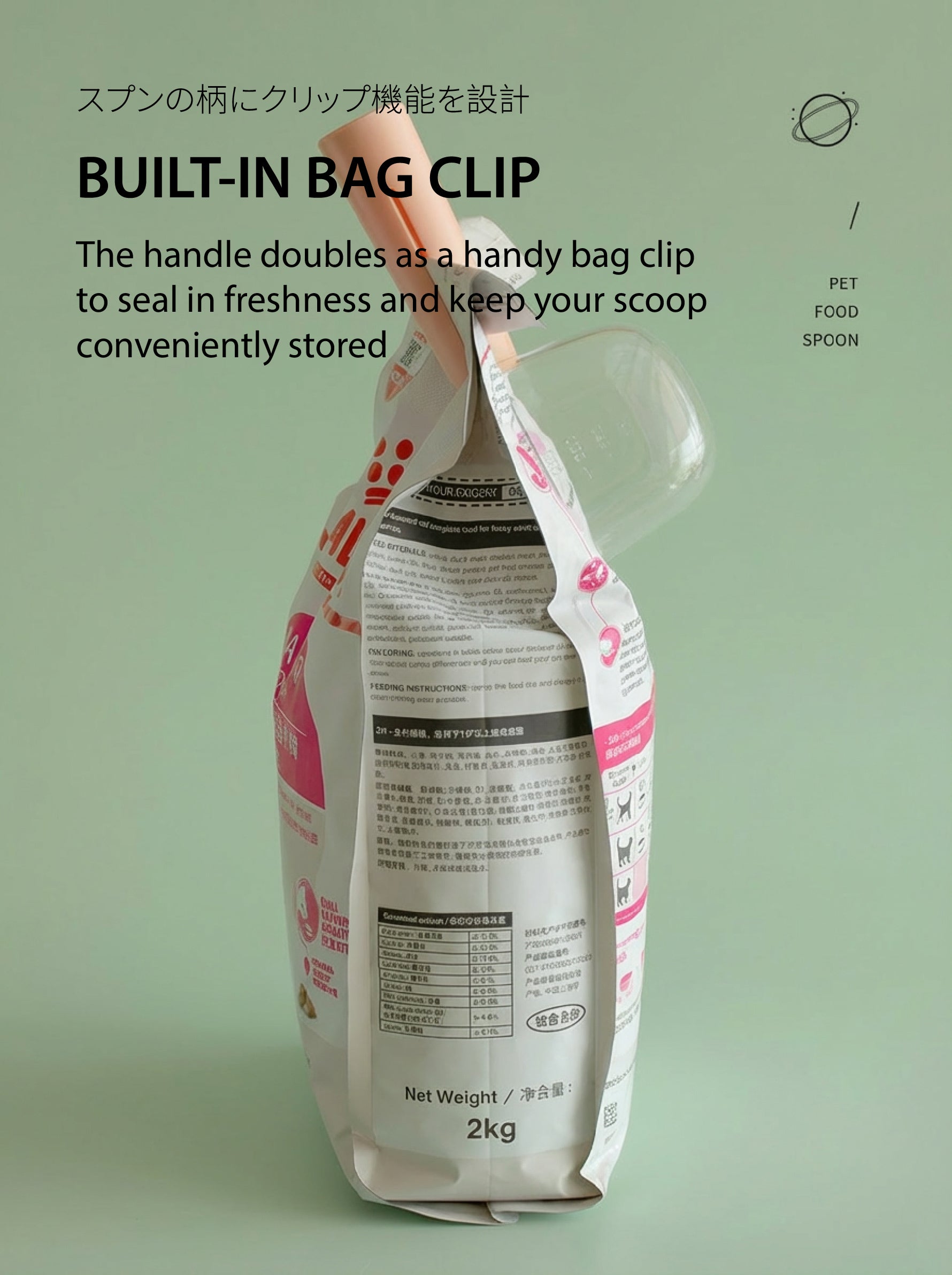 No more searching for a separate bag clip! The handle is cleverly designed to double as a sturdy clip, sealing your pet's food bag tightly after each use. This locks in freshness, keeps out pests, and ensures every meal is as delicious as the first.